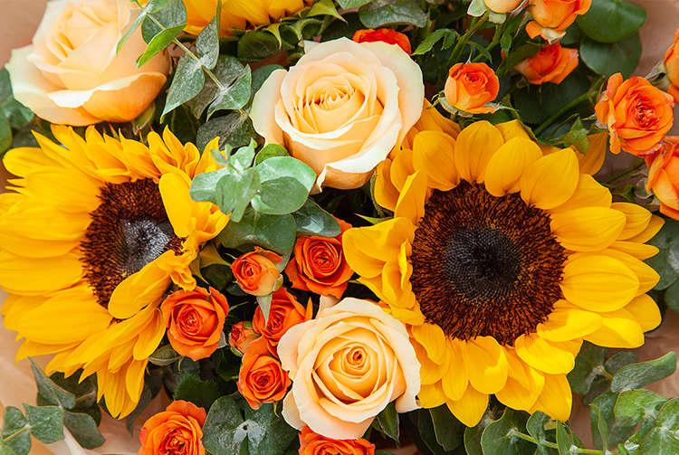 再搭配上几支向日葵和非洲菊看起来温暖向阳